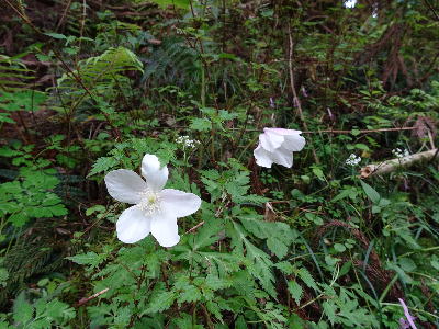 谷を下る途中でエンレイソウ、ヤマエンゴサク、バイケイソウ、ユキザサなどたくさんの花の名前を聞いたが次回の山行まで頭に留めておく自信はあまりない。出発直後の黒栂谷で見かけたイチリンソウ(左)とカトラ谷のニリンソウ(右)を比較すると花の数の他、葉の切れ込み方に特徴があるようで、少し理解ができたと思っている。
