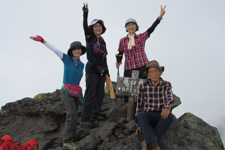 テーブルの様な山頂からは、左手はオホーツク海、右手は太平洋の彼方に国後島の山が浮かぶ雄大な360度の展望のはず。残念ながら今日はなんにもみえません。ドンドン ガスが上がってくる。