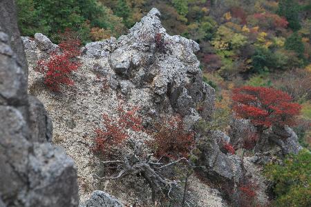 犬返しの険の岩場のドウダンツツジの紅葉 犬返しの険